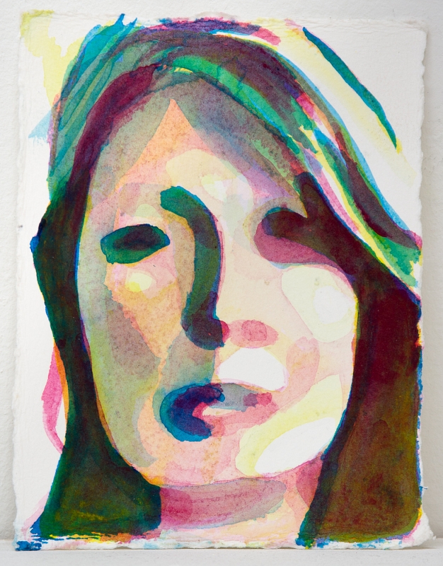 • Portrait of Unknown acrylic and watercolor on paper mounted on wood panel, 30 × 30 cm. 2021 © Kenneth Pils.