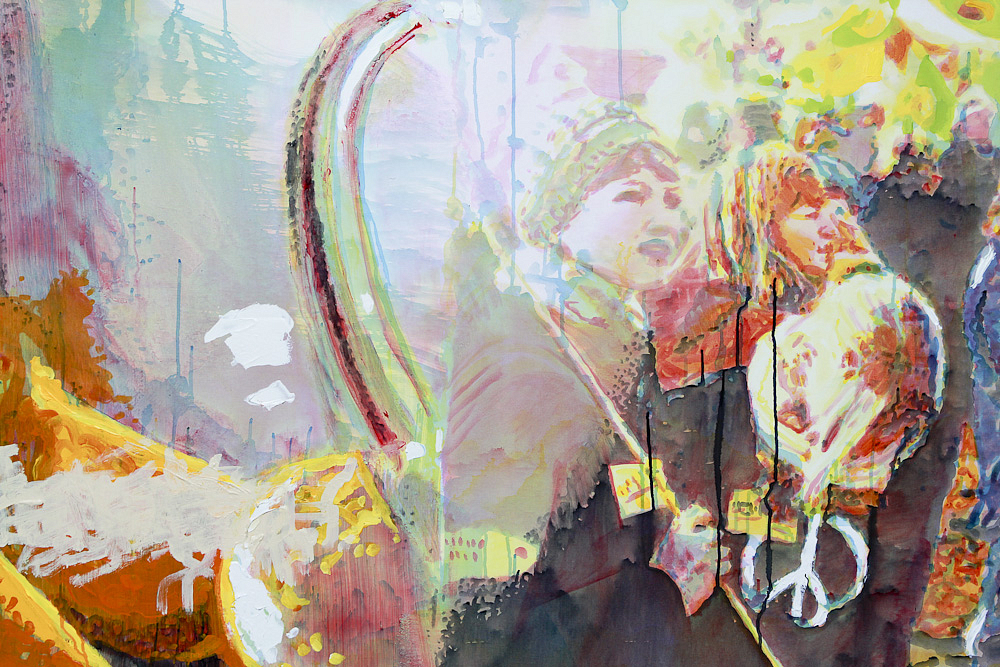 Through an elaborate random process the images and composition are chosen to generate a digital photo collage which are transformed by the act of painting into “inplausible” works of art open to our interpretation.