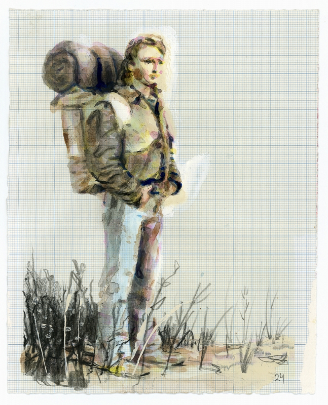 The Halted Wanderer (day 024) The Halted Wanderer (day 024) diaries Slow Down 17 cm x 21 cm Media Drawings Mixed media drawing Paintings Mixed media paintings 2021 Information Loosely inspired by a movie still "They Live" 1988.
