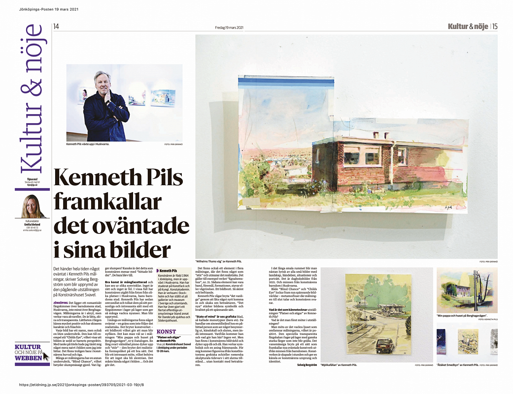Kenneth Pils was born in 1964 in Jönköping, grew up in Huskvarna, and studied at National College of Art and and the Royal Art Academy in Stockholm. He is nowadays active in Stockholm and exhibits regularly in Sweden and Europe. He has made a number of public commissions, including Danderyd Hospital and Södersjukhuset.