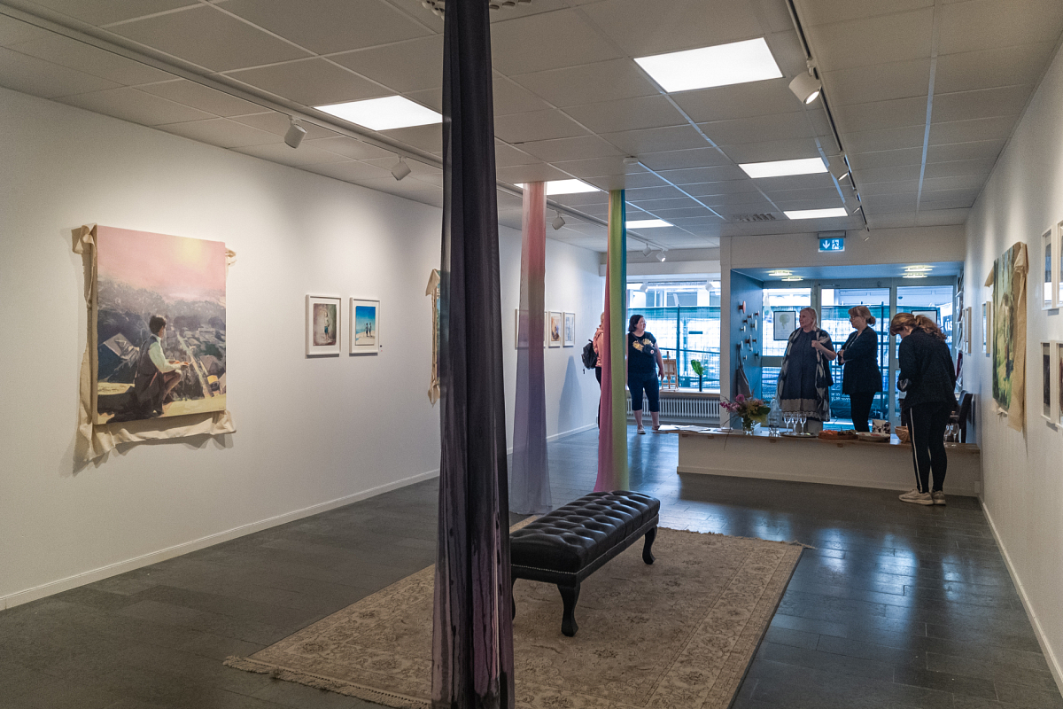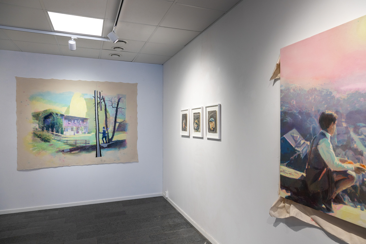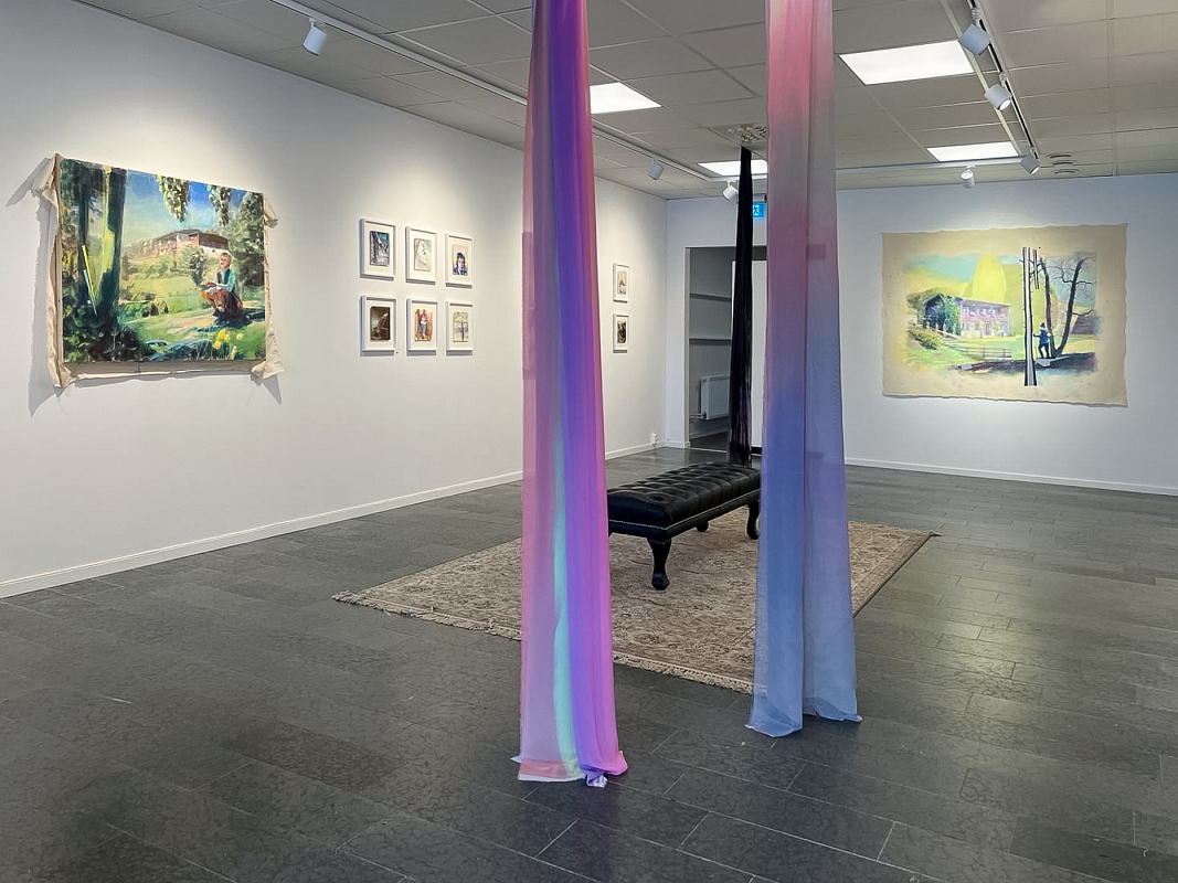 The large works are places in an inner landscape – a magical-realist archipelago of memories from the artist's upbringing in the hilly terrain of Huskvarna. Here, fragments of light, ravines, and streams carrying a particular presence are captured.